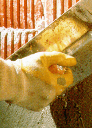 - Hände mit fetthaltiger Hautschutzsalbe einreiben, nitrilgetränkte Baumwoll-Handschuhe benutzen