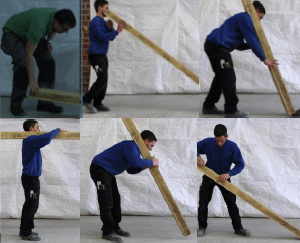 - anheben eines Balkenendes mit der Methode „leichtes Gewicht“
