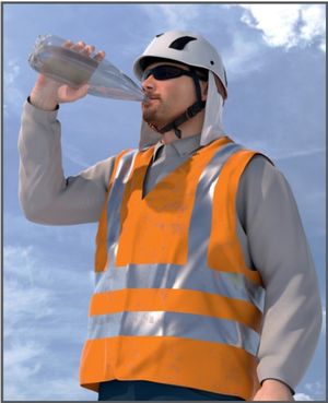 Beim Hitzschlag sollte die betroffene Person von schwerer Kleidung befreit und mit Wasser übergossen werden.