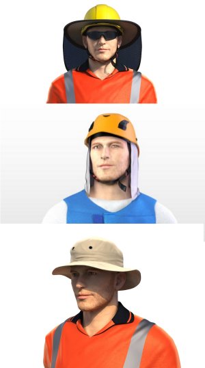 Standard-Schutzhelme bieten nur im Stirnbereich einen gewissen Schutz für Haut und Augen. Helme mit Nackentuch oder umlaufendem Schutzrand bieten einen zusätzlichen Schutz für Hals, Nacken und Ohren.