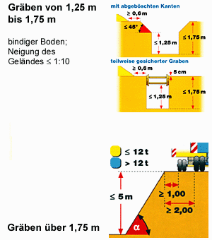 vorgeschriebenen Abstand von der Baugruben-, Grabenkante