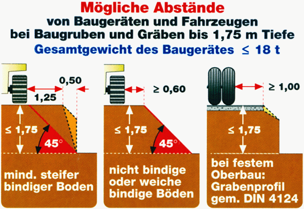 Welche Abstände müssen Baugeräte und Fahrzeuge von Baugruben und Gräben haben?