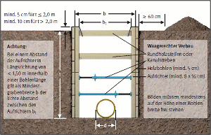 - Vorschachtung hat der Standfestigkeit des Bodens zu entsprechen (ein bis zwei Bohlenbreiten).