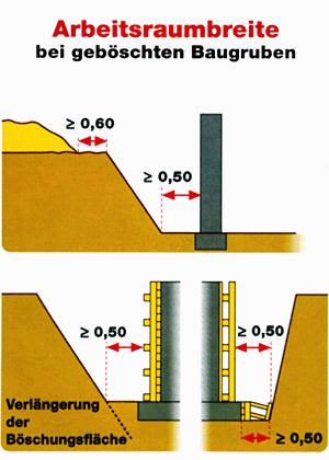 Arbeitsraumbreite bei geböschten Baugruben
