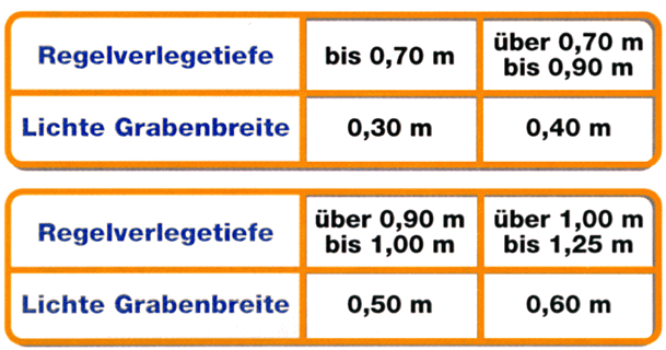 Lichte Mindestbreite für Gräben ohne Arbeitsraum