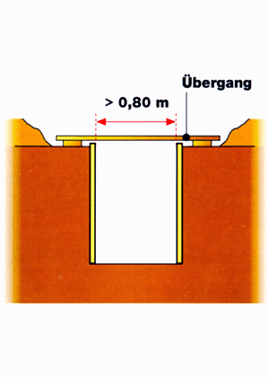 Gräben mit mehr als 0,8 m Breite sind mit Laufbrücken oder Laufstegen (b > 0,5 m) zu versehen.