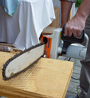 - Nicht in geschlossenen Räumen sägen (Abgase).