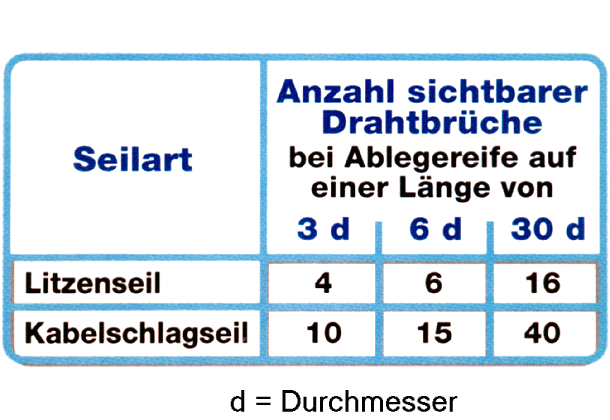 Ablegereife und Anzahl der sichtbaren Drahtbrüche