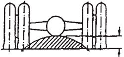 | 4.5.2 | Die "Bodenfreiheit unter einer Achse" ist durch die Scheitelhöhe eines Kreisbogens bestimmt, der durch