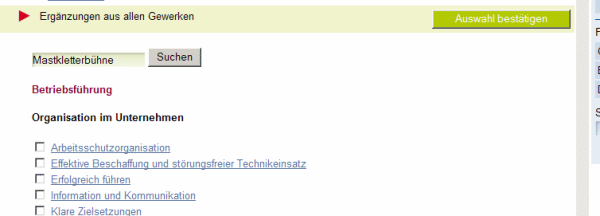 Sie können die komplette Liste durchgehen oder Sie nutzen die Suchfunktion in den „Ergänzungen aus allen Gewerken“.