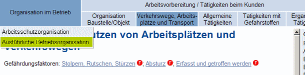 Dazu gehen sie oben im Auswahlmenü auf den ersten Punkt "Organisation im Betrieb ":