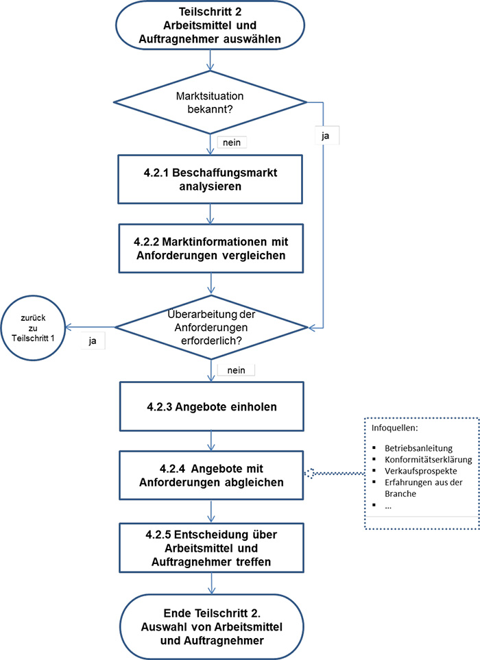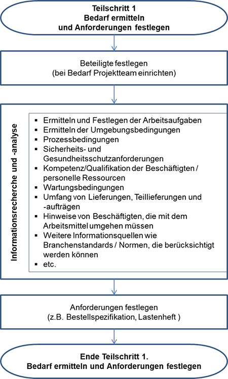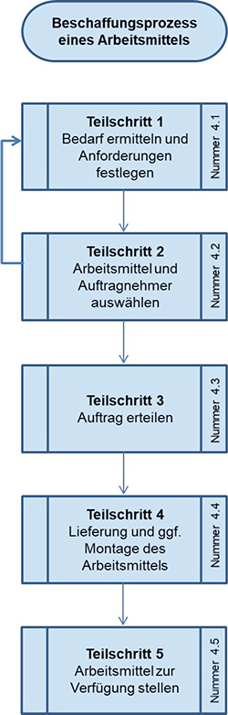 (1) Der Prozess der Beschaffung sicherer und geeigneter Arbeitsmittel lässt sich in fünf Teilschritte einteilen: