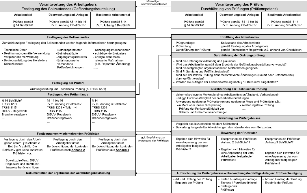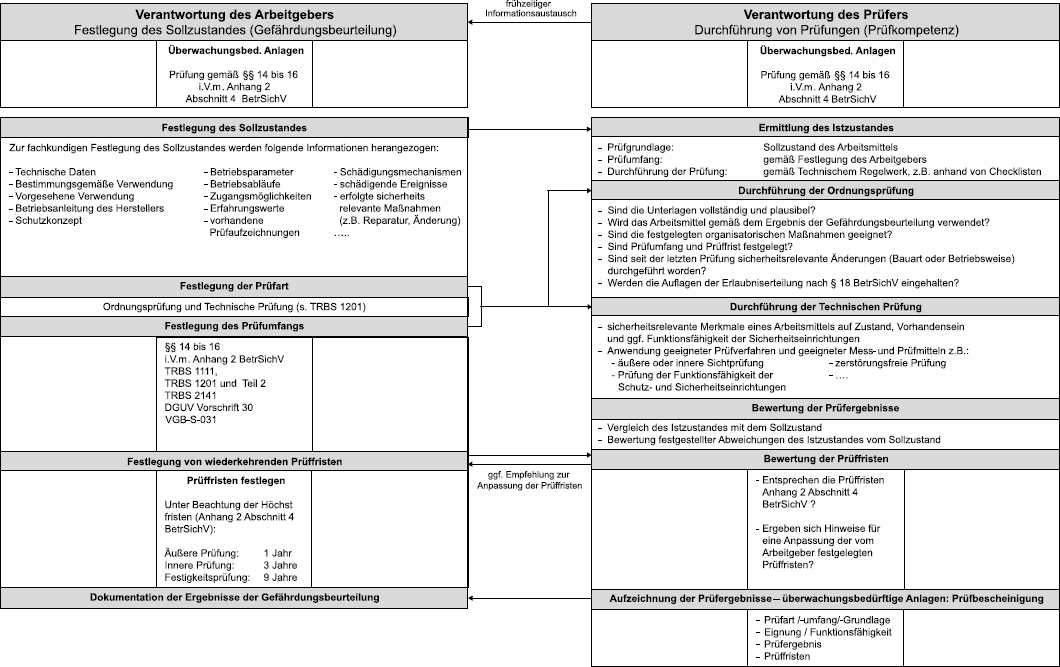 Die Prüfung wird gemäß § 14 in Verbindung mit Anhang 3 BetrSichV von einem Prüfsachverständigen durchgeführt und dokumentiert: