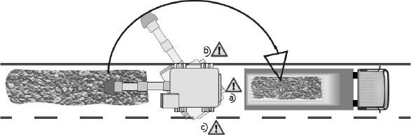 | b) | bei Vorwärtsfahrt mögliche Sichteinschränkungen durch die angehobene Schaufel des Radladers; |