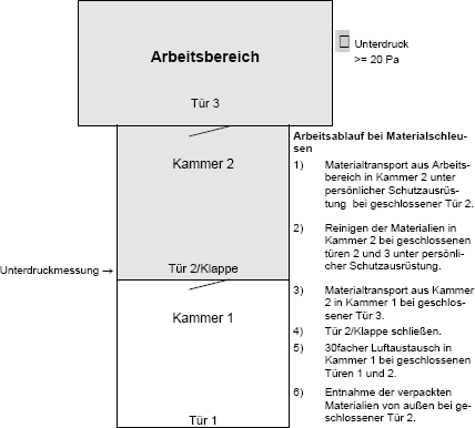(2) Das Betreten und Verlassen des Arbeitsbereichs durch die Materialschleuse ist nicht zulässig.