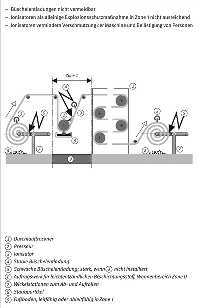 (1) Folien- und Papierbahnen können unter anderem beim Laufen über Walzen gefährlich aufgeladen werden.