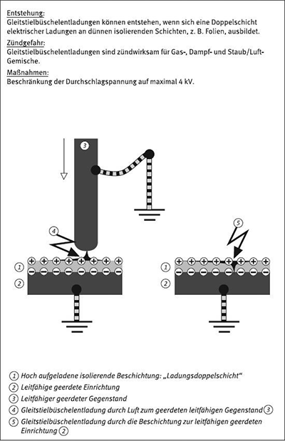 Gleitstielbüschelentladungen sind in aller Regel für brennbare Gase, Dämpfe und Stäube zündwirksam und besitzen Energien von bis zu 1 J oder mehr. Erfahrungsgemäß treten die für Gleitstielbüschelentladungen notwendigen hohen Energiedichten unter folgenden besonderen Voraussetzungen auf: