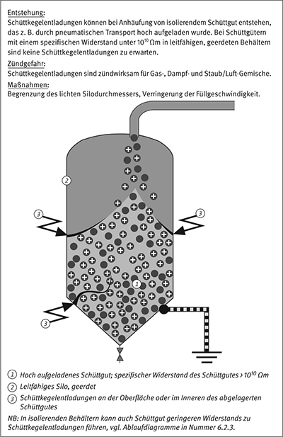 Beispiel 17 zeigt eine schematische Darstellung der Schüttkegelentladung. Beeinflussende Faktoren für Schüttkegelentladungen sind: