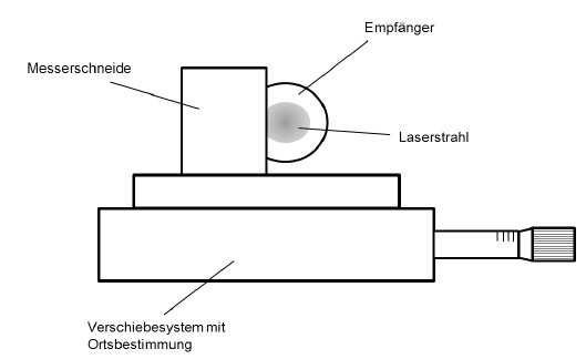 (2) Es werden dabei jeweils ortsabhängige Messungen des Strahldurchmessers d durchgeführt. Beim ersten Verfahren wird d durch Messungen der Laserleistung bei verschiedenen Durchmessern der Blende bestimmt, während er bei den anderen Verfahren aus Leistungsmessungen in Abhängigkeit der transversalen Verschiebung der Schneide oder des Schlitzes erfolgt. Je nach Wahl des Verfahrens müssen bestimmte Randbedingungen eingehalten und Korrekturen vorgenommen werden. Moderne, automatisch arbeitende Systeme mit Bildverarbeitung, die die Messbedingungen der Norm einhalten, sind kommerziell erhältlich.