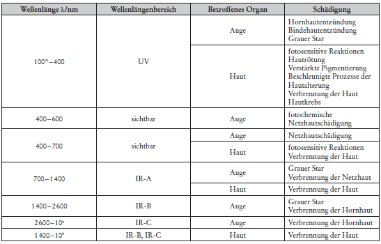 * Nach § 2 "Begriffsbestimmungen" der OStrV ist der Wellenlängenbereich der optischen Strahlung auf 100 nm bis 1 mm festgelegt.